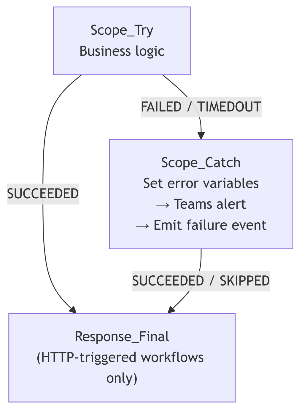 Response_Final runs on every code path. The HTTP caller always gets a response. No timeouts. No abandoned requests.